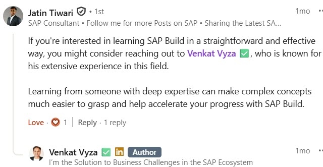 I operate across Developer, Functional, and Admin Roles for S/4HANA & BTP - so I don’t just teach features; I show how Business Processes, Data, Integrations, and Tools fit together.